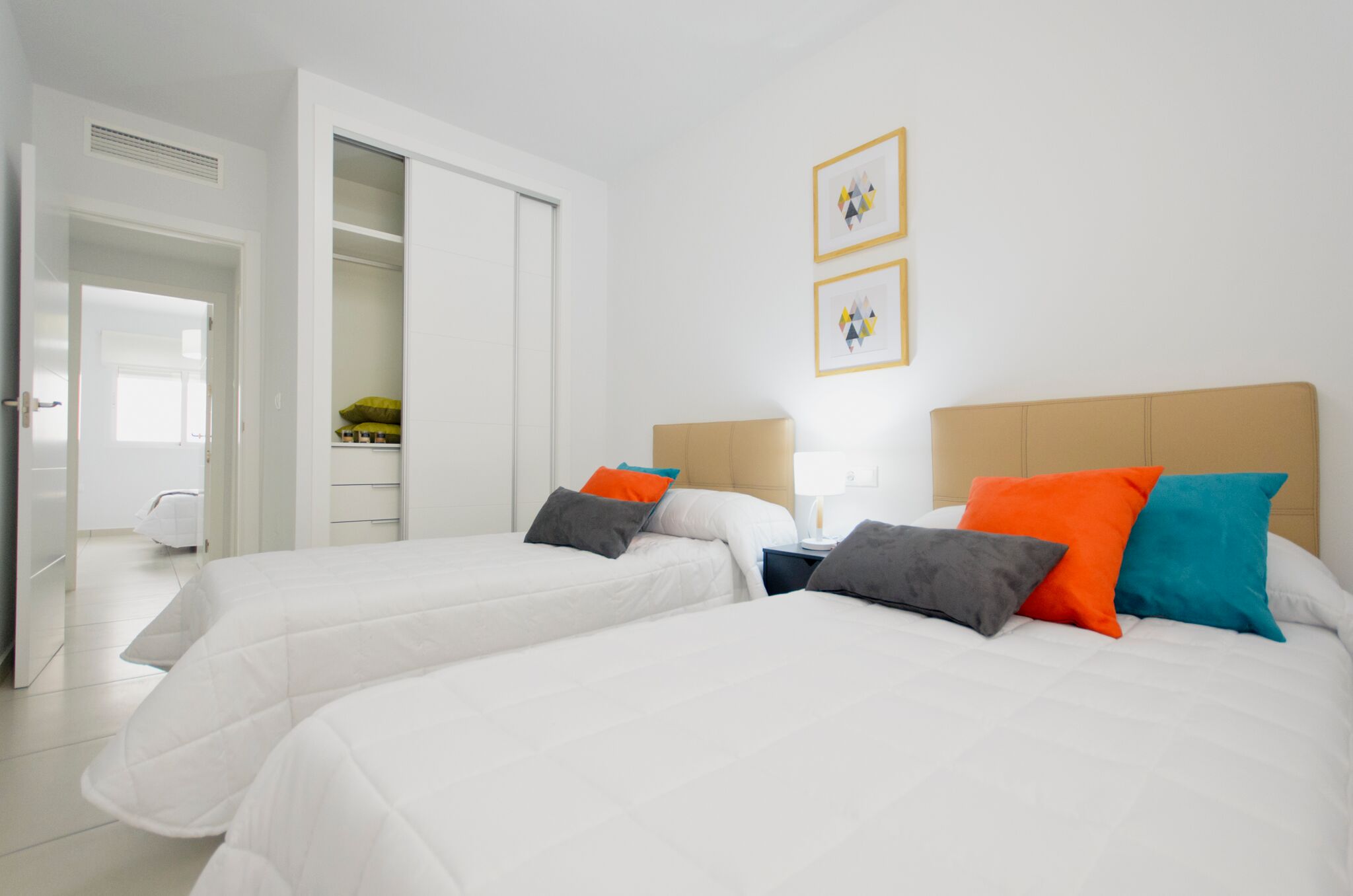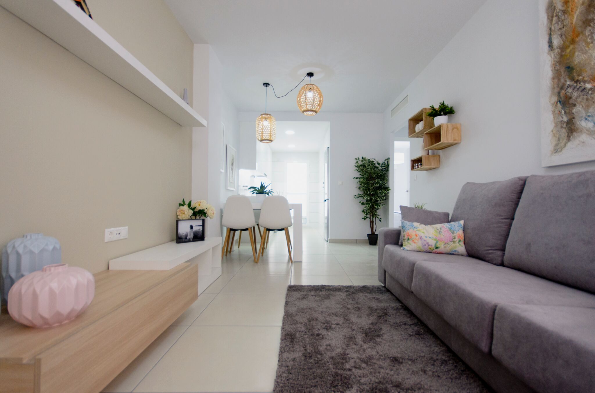 • Overview: Bedrooms: 2Bathrooms: 1Parking: Single GarageOutdoor Area: Terrace (s), Sea View, PoolBeach 0.9 km Airport 22.7 km 2 1Summary FREE FURNITURE PACKAGE AND DOUBLE GARAGE IN THE MONTH / MARCH / MONTHS! The building is located in the excellent location of El Pinet, in La Marina, very close to the beautiful beaches and vast natural park of pine trees. only 5 minutes from the village, 10 min from the beach, and only 20 minutes from the airport.The apartments are three floors; the ground floor which have a large terrace at the front and rear patio, the first floor have a terrace and the upper floor which have a terrace and private solarium with pantry.The apartments are all with two bedrooms and a bathroom, separate kitchen, living / dining room, and terrace, washing machine, and range from 69 m² to 80 m²In total there are 136 apartments (in small blocks of 6 each) There are only a few for sale Prices from € 95,000 to € 165,000.