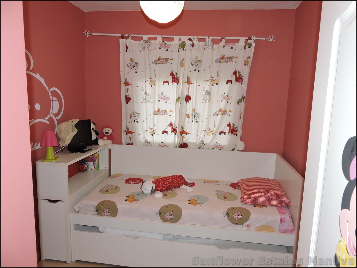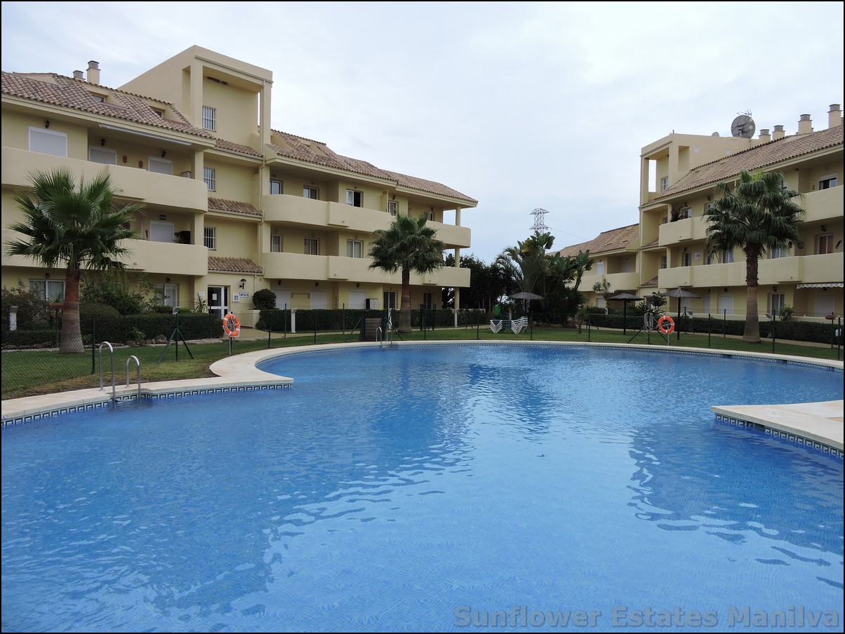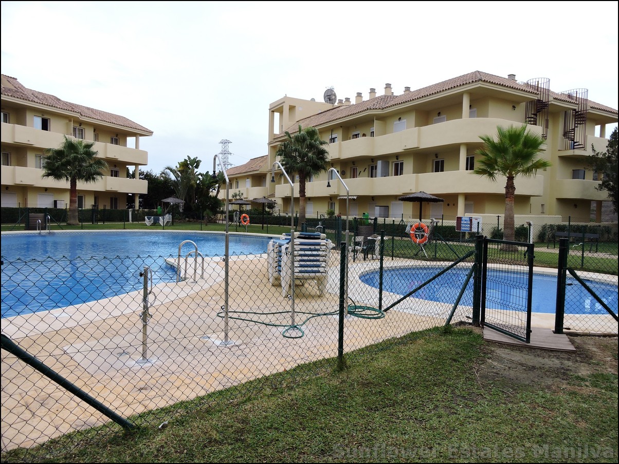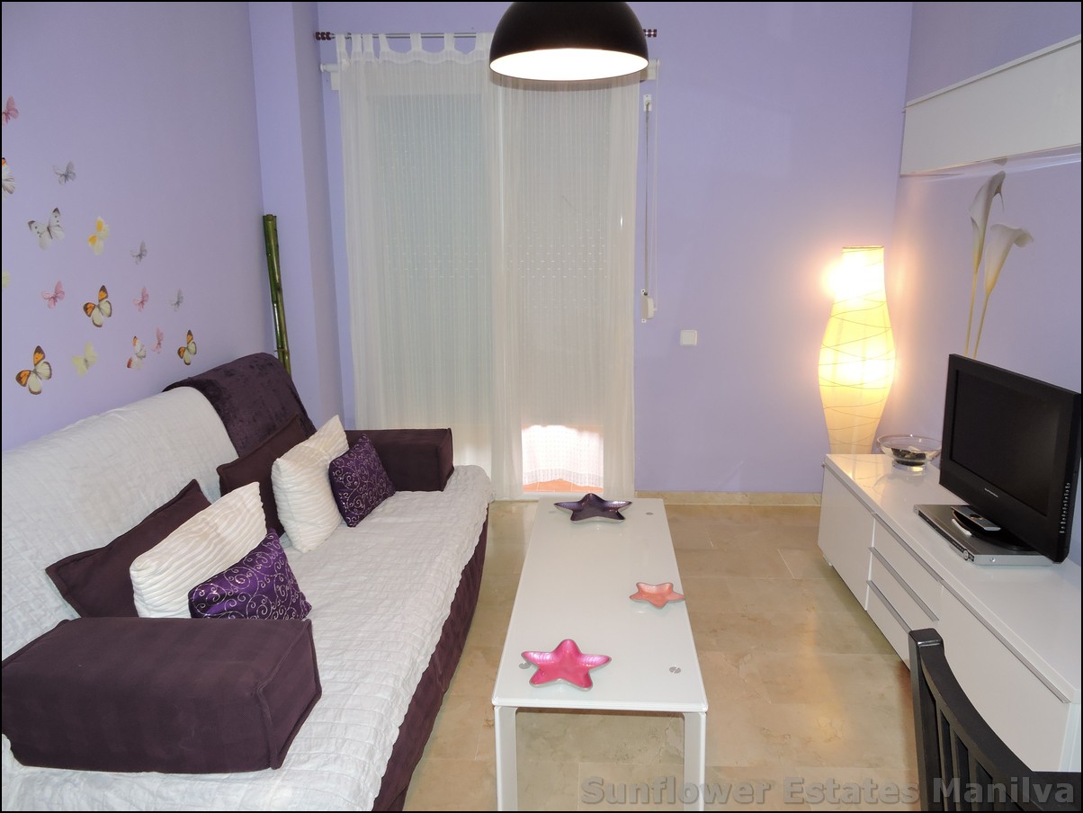 Overview: GREAT DEAL! Apartment with views, parking, pool and storage! Walking distance to the beach, great rental investment! Fantastic two bedrooms, two bathrooms apartment, including parking space and storage room! Urbanization very new and really nicely done, communal fees 80 Euros a month. Large communal pool and separate children’s pool. Fully air conditioned and electric. This urbanization is walking distance from Aldea beach and has a good size terrace with sea views and morning sun. ESPAÑOL: Apartamento de dos habitaciones y dos baños. Uno amueblado para habitación de niña. La habitación principal con baño de bañera y el baño familiar con una ducha. El salón y comedor conjunto y de buen tamaño, muebles modernos y comodos todo incluido en el precio. Una terraza mirando al este y con vistas laterales al mar. Cerca de uno de las mejores playas de Manilva – Aldea beach. Comunidad con piscina y el precio incluye un parking de un buen tamaño y trastero! Comunidad al mes de 79Euros y IBI anual 401Euros..