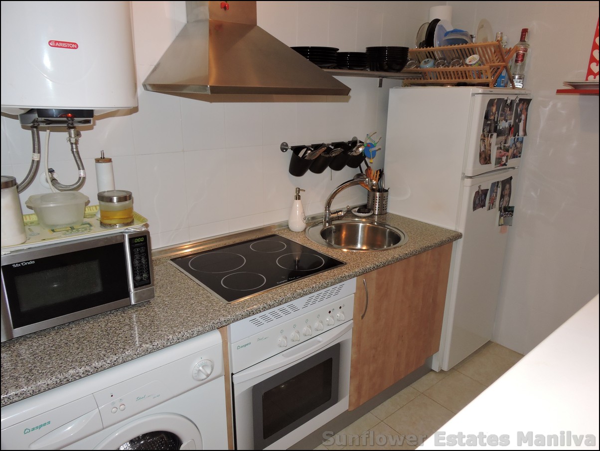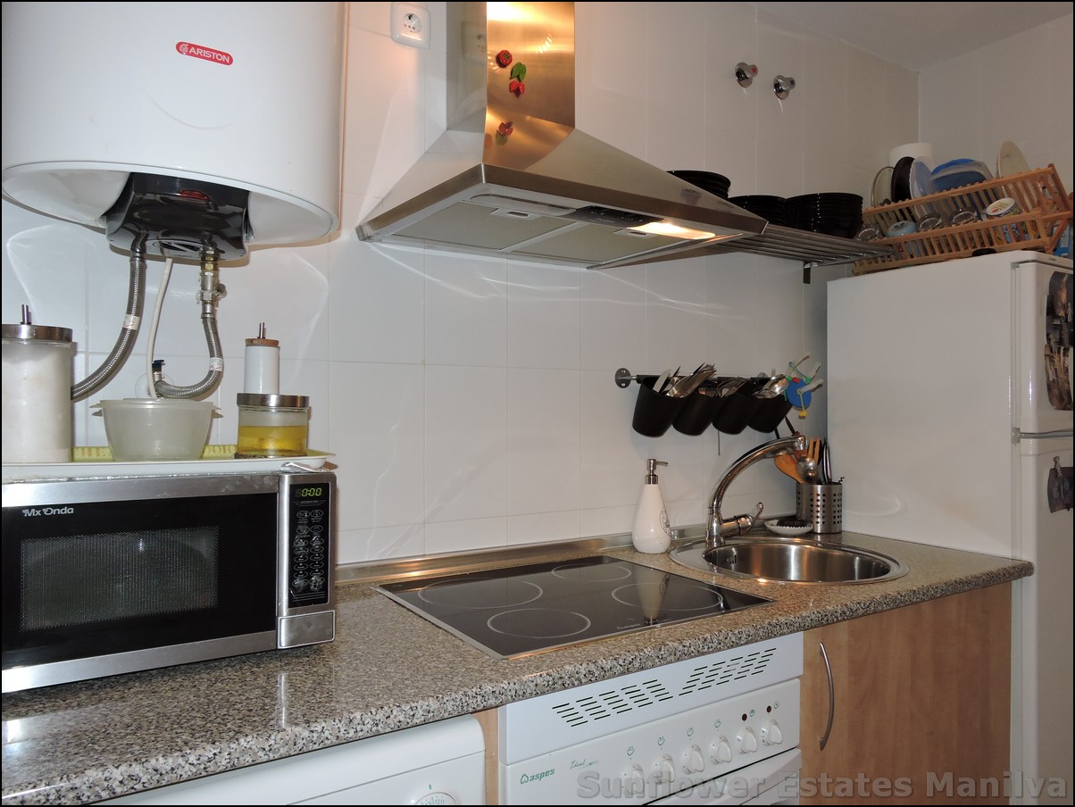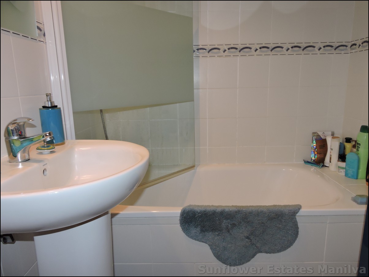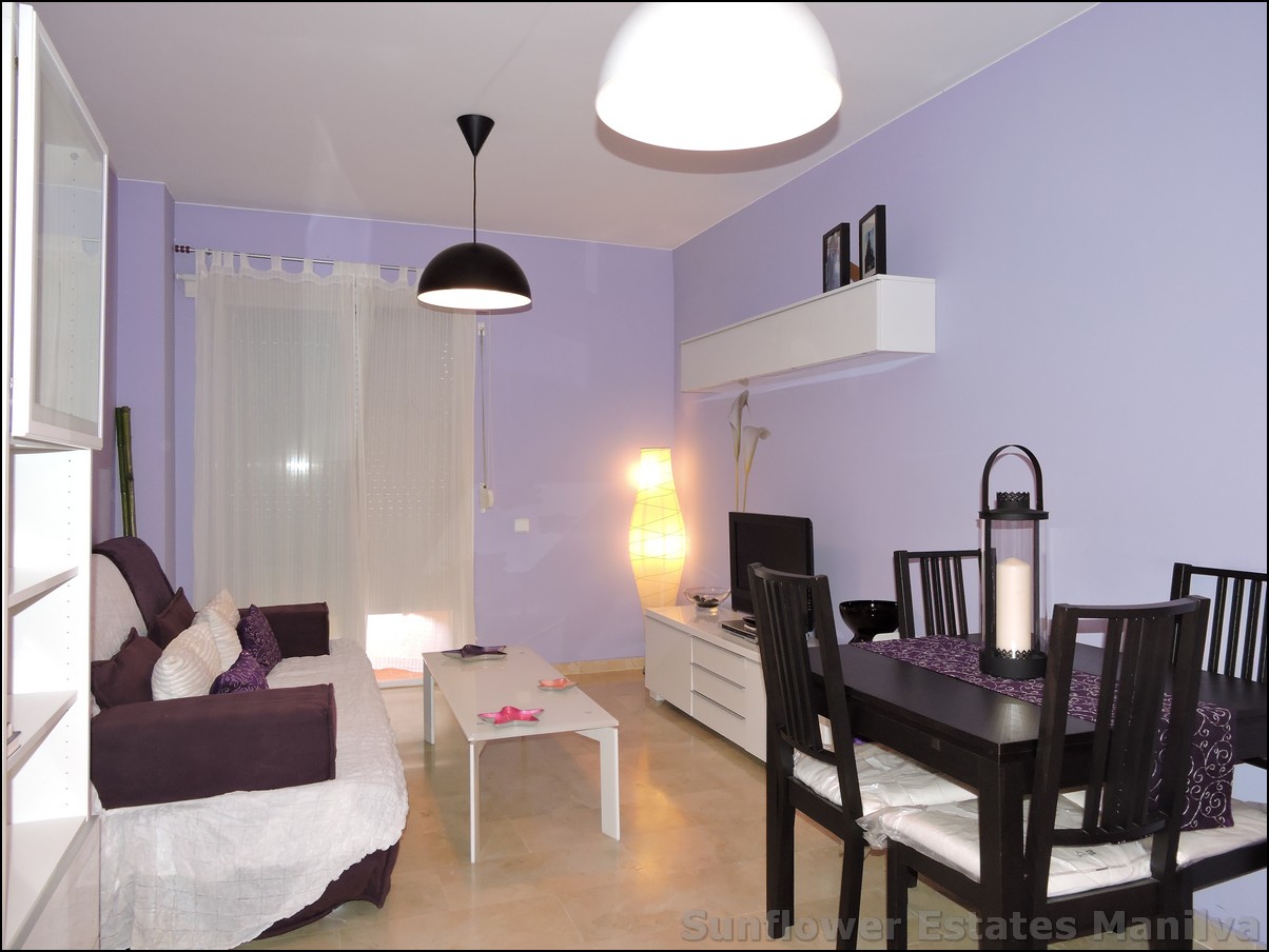 Overview: GREAT DEAL! Apartment with views, parking, pool and storage! Walking distance to the beach, great rental investment! Fantastic two bedrooms, two bathrooms apartment, including parking space and storage room! Urbanization very new and really nicely done, communal fees 80 Euros a month. Large communal pool and separate children’s pool. Fully air conditioned and electric. This urbanization is walking distance from Aldea beach and has a good size terrace with sea views and morning sun. ESPAÑOL: Apartamento de dos habitaciones y dos baños. Uno amueblado para habitación de niña. La habitación principal con baño de bañera y el baño familiar con una ducha. El salón y comedor conjunto y de buen tamaño, muebles modernos y comodos todo incluido en el precio. Una terraza mirando al este y con vistas laterales al mar. Cerca de uno de las mejores playas de Manilva – Aldea beach. Comunidad con piscina y el precio incluye un parking de un buen tamaño y trastero! Comunidad al mes de 79Euros y IBI anual 401Euros..