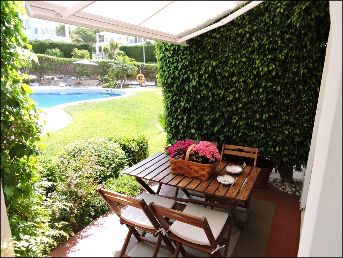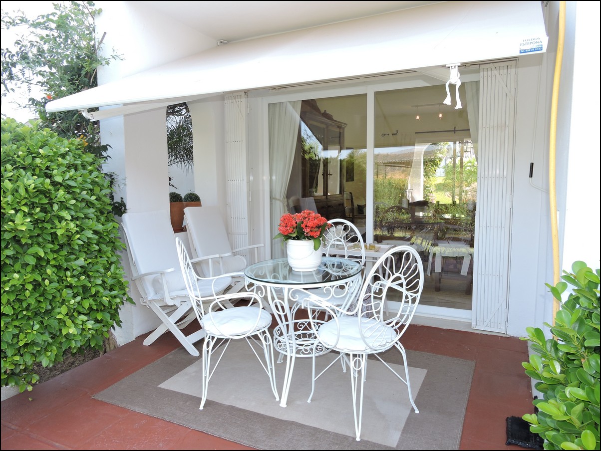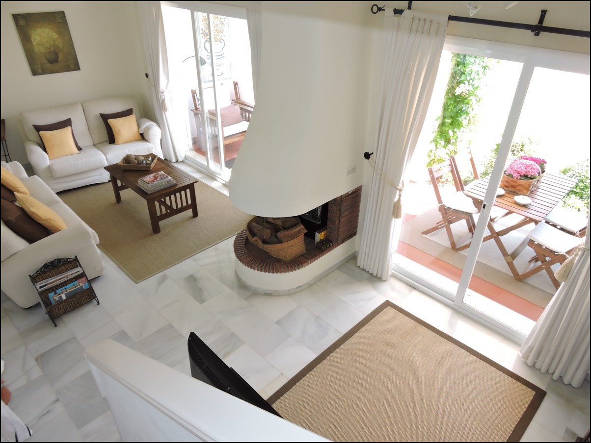 Overview: Townhouse in Duquesa, Altos de la Duquesa. Lovely exclusive small urbanisation with very well kept gardens, pool and the townhouse is in immaculate condition. The house is sold fully furnished and all furnishings are of high standard, beautiful classic décor. Entering the urbanization you have your own private / street parking in front of the door of your house. Little front terrace. Inside, nice good fully fitted corner kitchen. Guest toilet. Good size dining and living room, with fireplace. From the lounge walk out onto a nice terrace looking out onto the gardens and communal pool. First floor two large en-suite bedrooms. Master bedrooms also has a nice terrace looking out onto the pool (South east). Upstairs another bedroom/ dining area at the moment. Barbecue, loungers and great area to bake in the sun. All in absolute fantastic condition. Great little holiday home or first residence. Townhouse in Duquesa, Altos de la Duquesa. Adosado en Duquesa, Altos de la Duquesa. Preciosa y exclusiva urbanización pequeña con jardines muy bien cuidados, piscina y la casa adosada en perfectas condiciones. La casa se vende completamente amueblada y todos los muebles son de alta calidad, hermosa decoración clásica. Al ingresar a la urbanización tiene su propio estacionamiento privado / en la calle frente a la puerta de su casa. Pequeña terraza delantera. En el interior, buena cocina de esquina totalmente equipada. Aseo de invitados Buen tamaño comedor y sala de estar, con chimenea. Desde el lounge salir a una agradable terraza con vistas a los jardines y la piscina comunitaria. Primera planta dos habitaciones grandes con baños en-suite. El dormitorio principal también tiene una bonita terraza con vistas a la piscina (sureste). Arriba, otro dormitorio / área de dining en este momento. Barbacoa, tumbonas y una excelente zona para hornear al sol. Todo en condiciones fantásticas absolutas. Gran pequeña casa de vacaciones o primera residencia. Sunflower Estates.